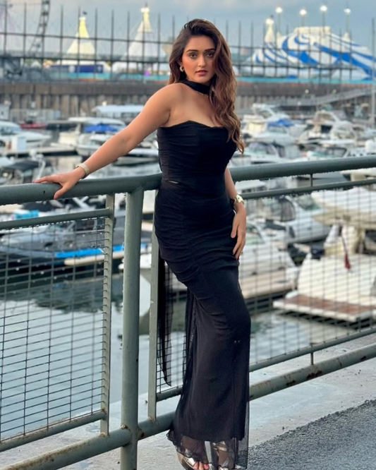Alara Summer 2 Pcs Set - Set of Top And Skirt With Scarf In Black