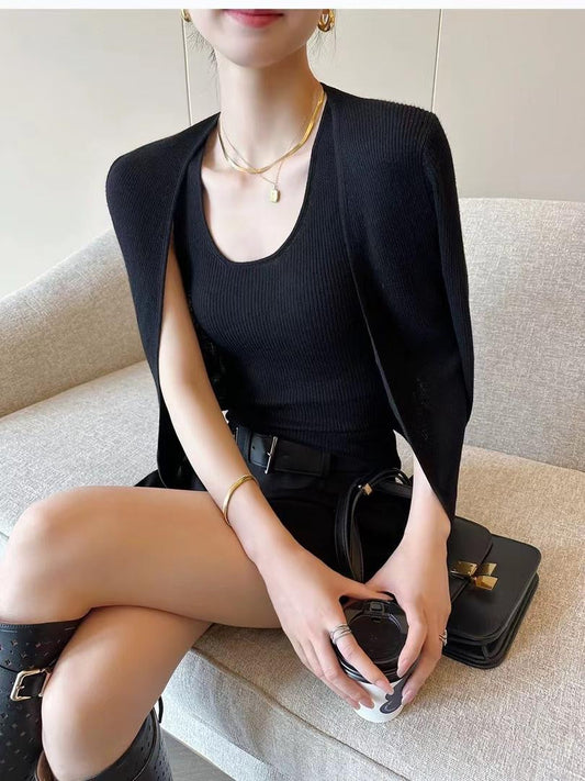 Nixie Statement Woolen Tops with Cape Style Sweater