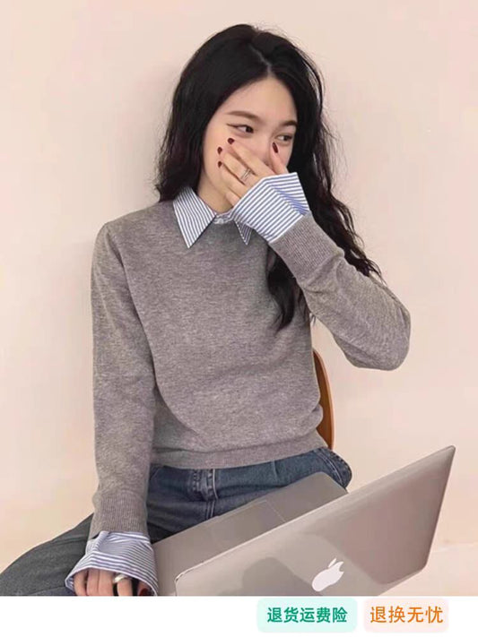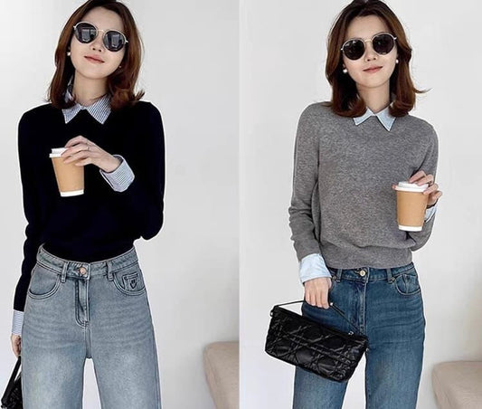 Blair Statement Tops with Attached Sweater In Navy Blue