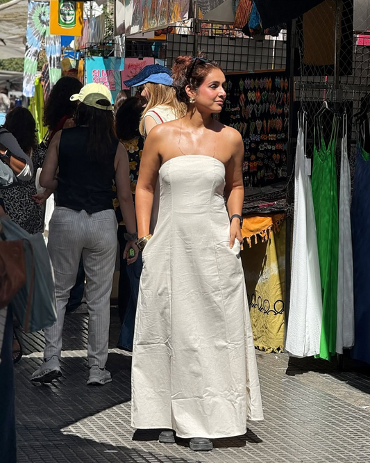 Maisie Offshoulder Holiday Tube Dress In Beige