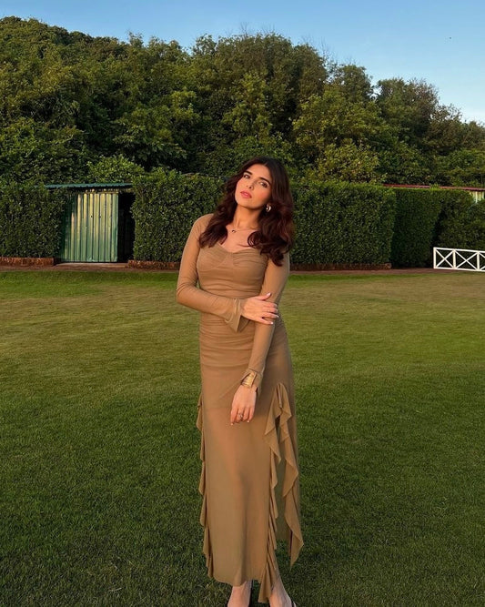 Lolita Ruffled Bodycon Maxi Dress In Brown