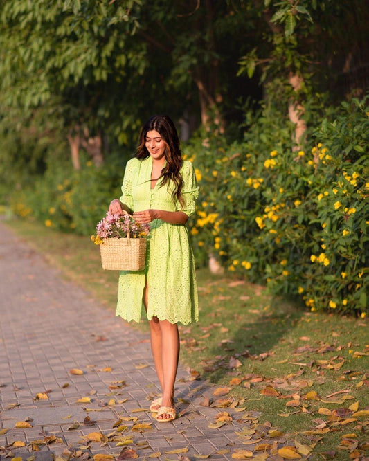 Jimmy Cotton Eyelet Midi Dress In Yellow