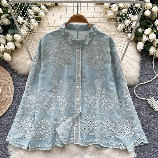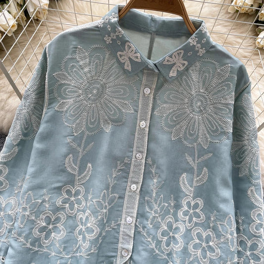 Cevia Premium Embroidered Cotton Shirt In Pista Green