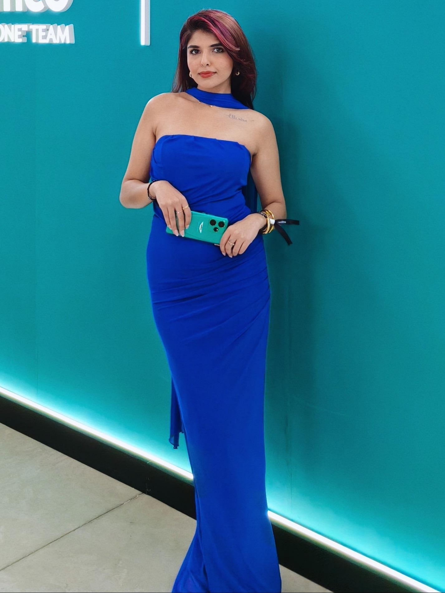 Alara Summer 2 Pcs Set - Set of Top And Skirt With Scarf In Navy Blue