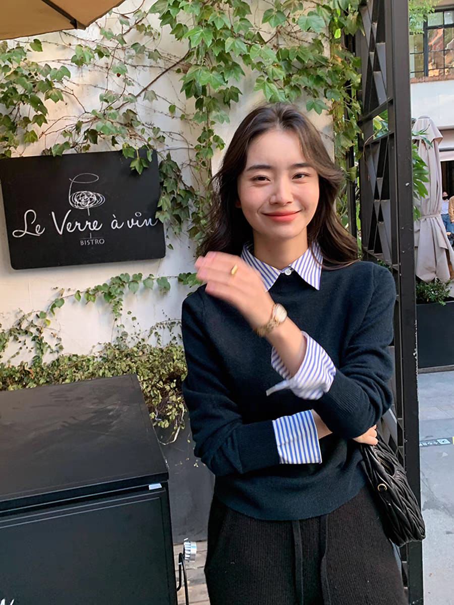 Blair Statement Tops with Attached Sweater In Navy Blue