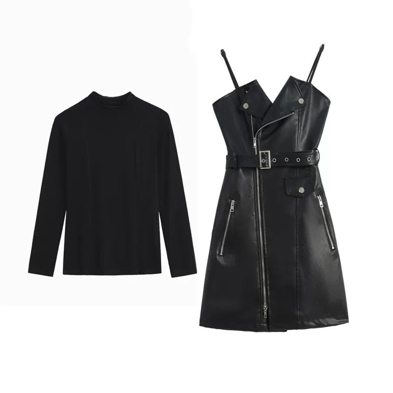 Champel PU Leather Dress in Black
