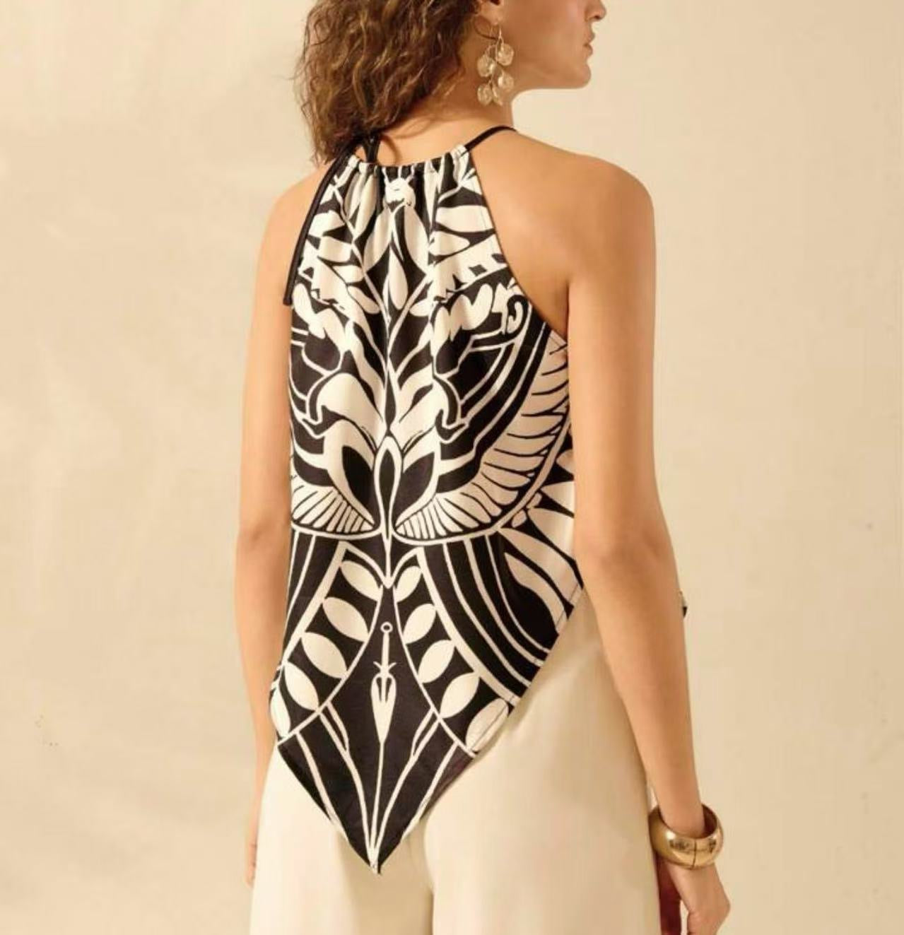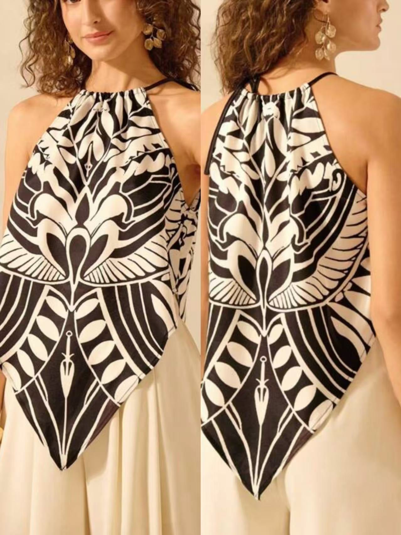 Designed with a graceful halter neckline and adjustable side-knot straps for a flattering fit. The scarf-inspired silhouette drapes beautifully for a lightweight, flowy feel that is perfect for warm days or statement evenings.