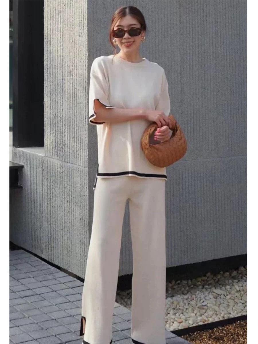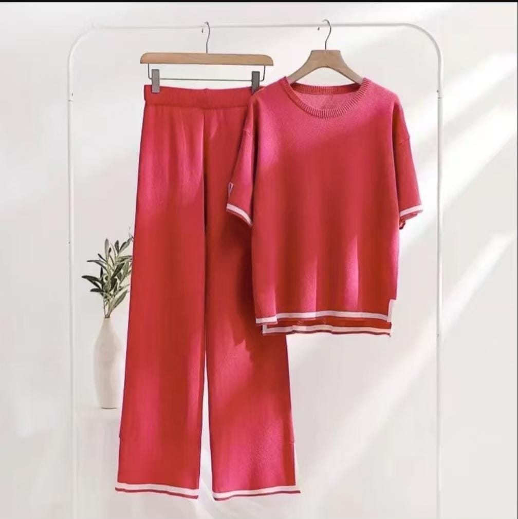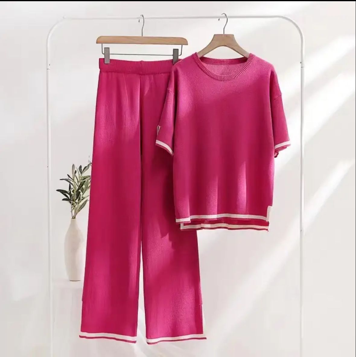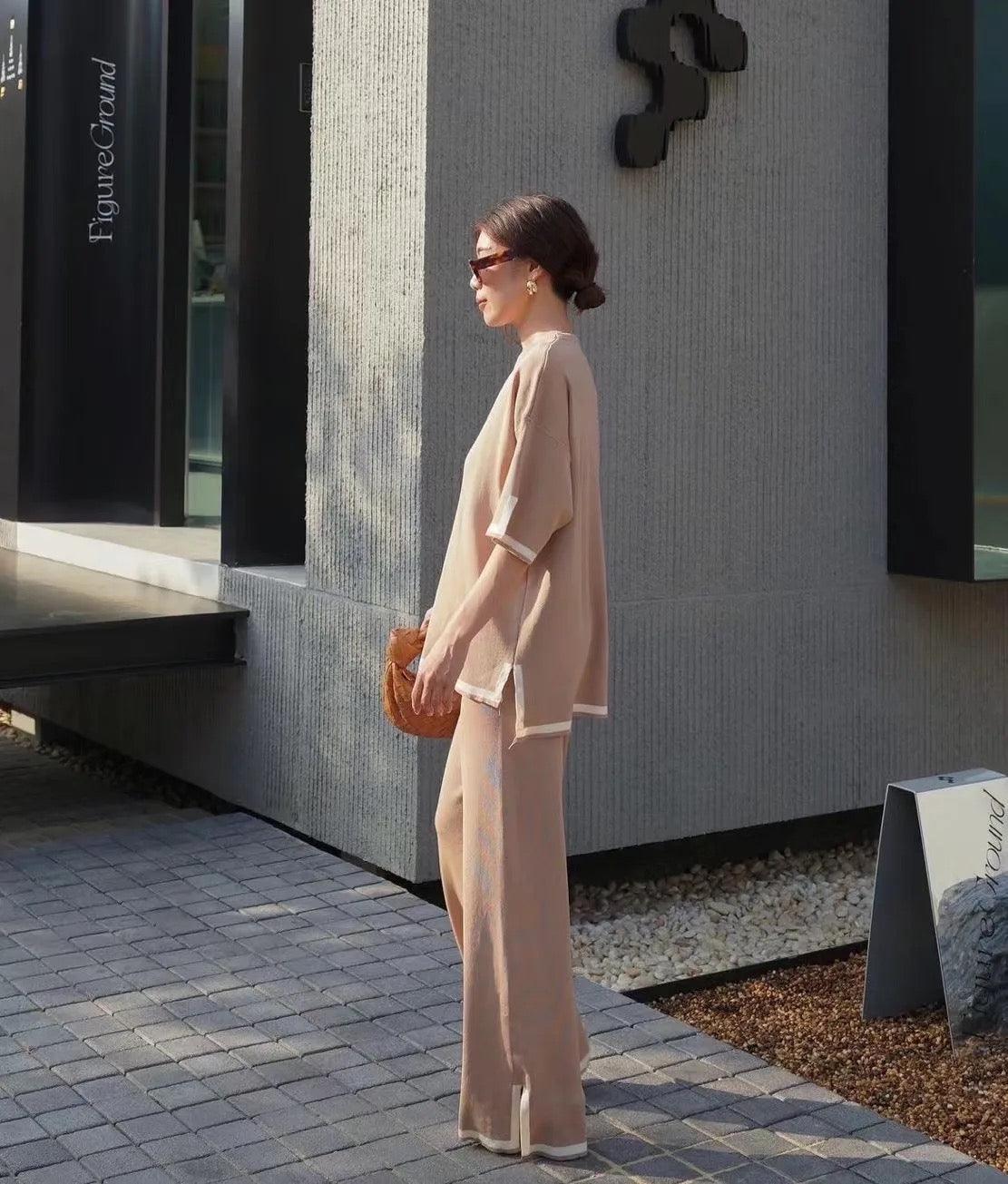 Flexxi Knitted Cotton Co-ord Set In Brown
