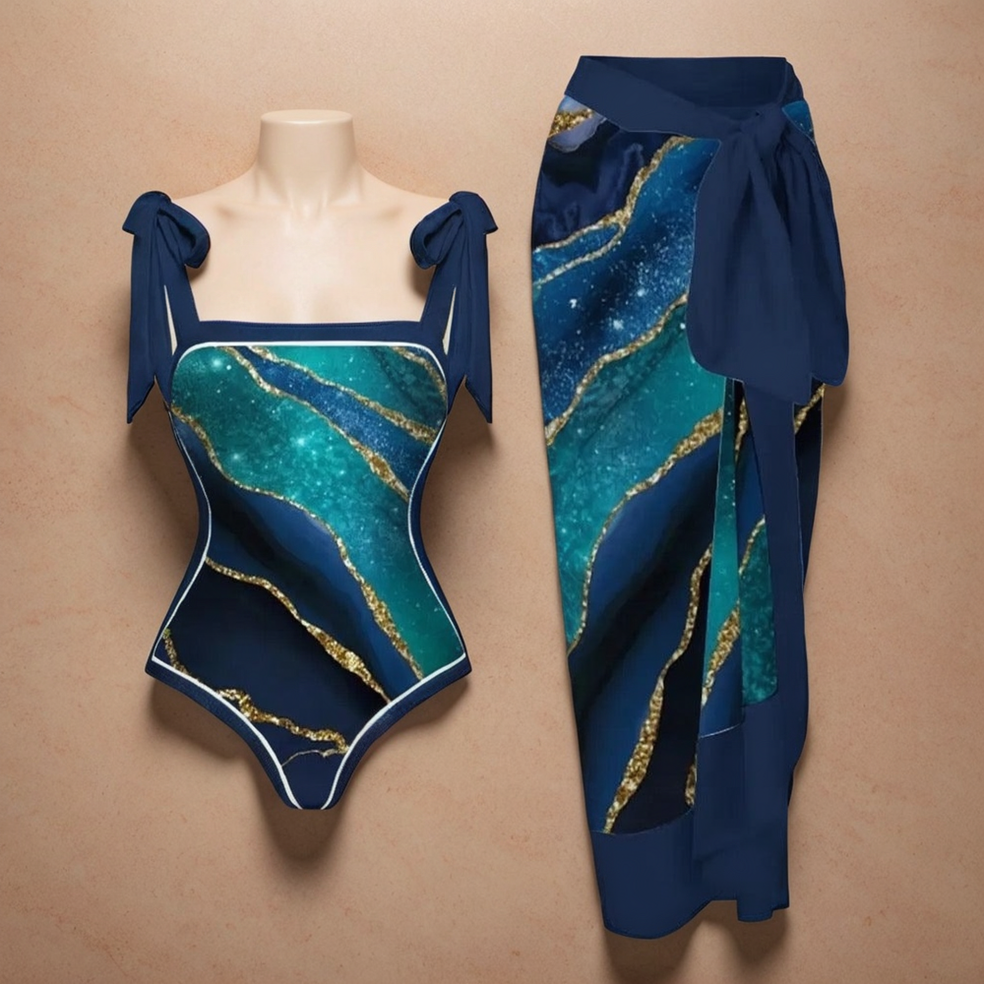 Helia Swimsuit with Sarong In Teal Blue