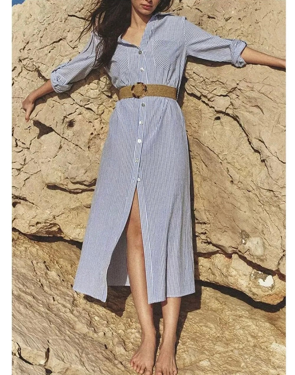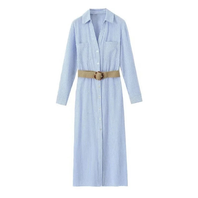 Jamie Luxe Striped Shirt Dress With Belt In Blue