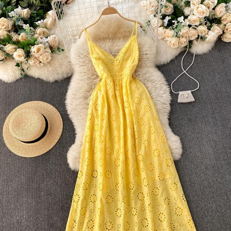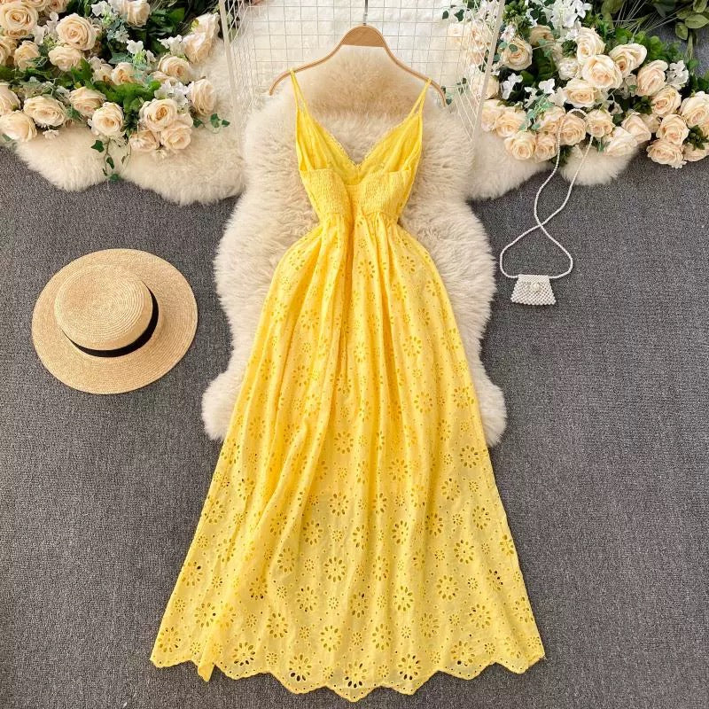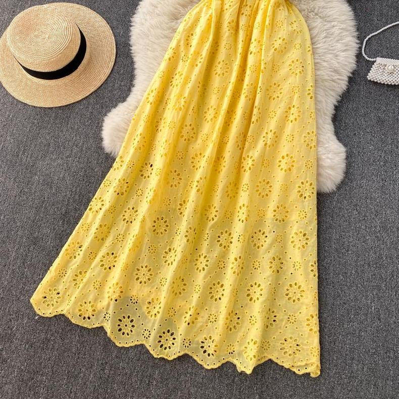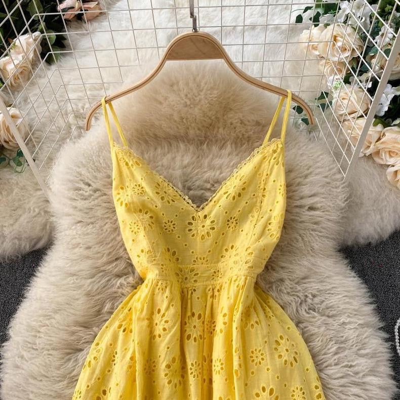 The eyelet cotton dress in sunny yellow is the perfect addition to your wardrobe for a day out. This gorgeous dress brings together effortless style and comfort. Crafted from airy cotton and adorned with delicate eyelet embroidery, this dress is a stunning testament to the designer's attention to detail. The breezy silhouette flatters every body type and exudes a laidback charm that's perfect for a casual day out. Whether you're strolling through a park or meeting friends for brunch, this eyelet cotton dress is a must-have. As seen on Tejasswi Prakash, it's the perfect statement piece to add to your collection. So why wait? Grab this eyelet cotton dress and get ready to make heads turn wherever you go.