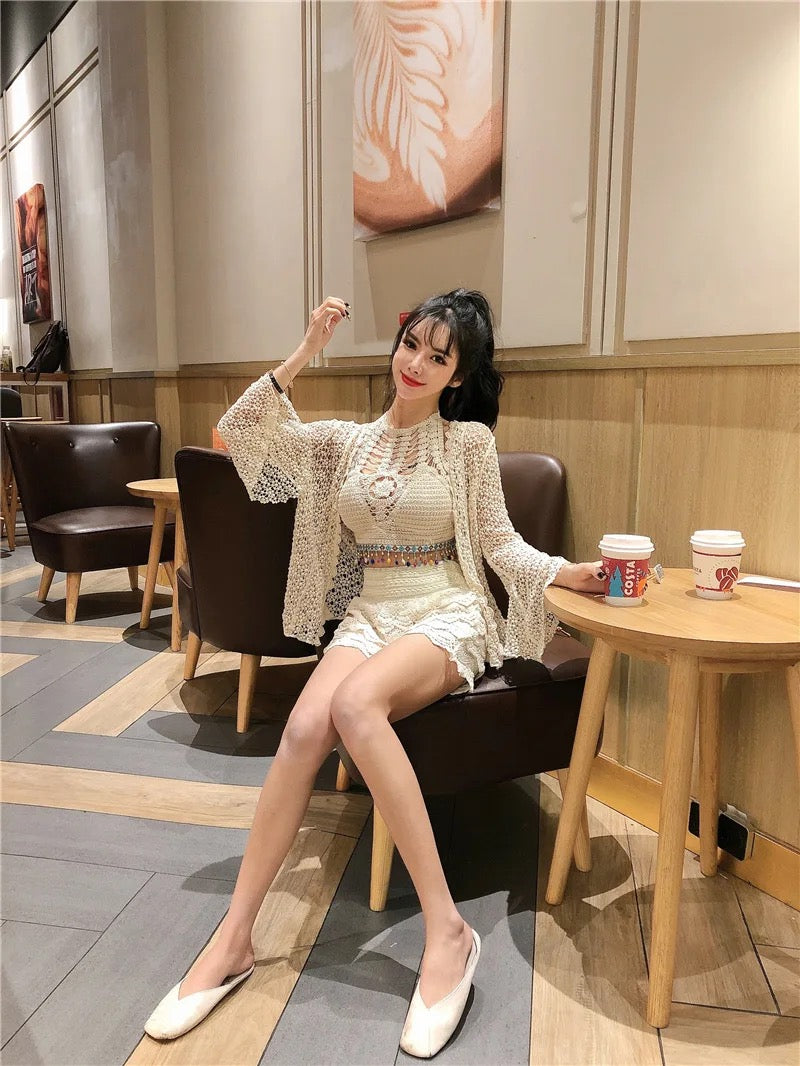 Maya 3 Piece Coord Set - Resortwear Set In Beige