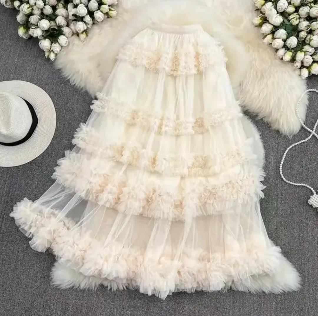 Melody Ruffled Mesh Skirt In Beige