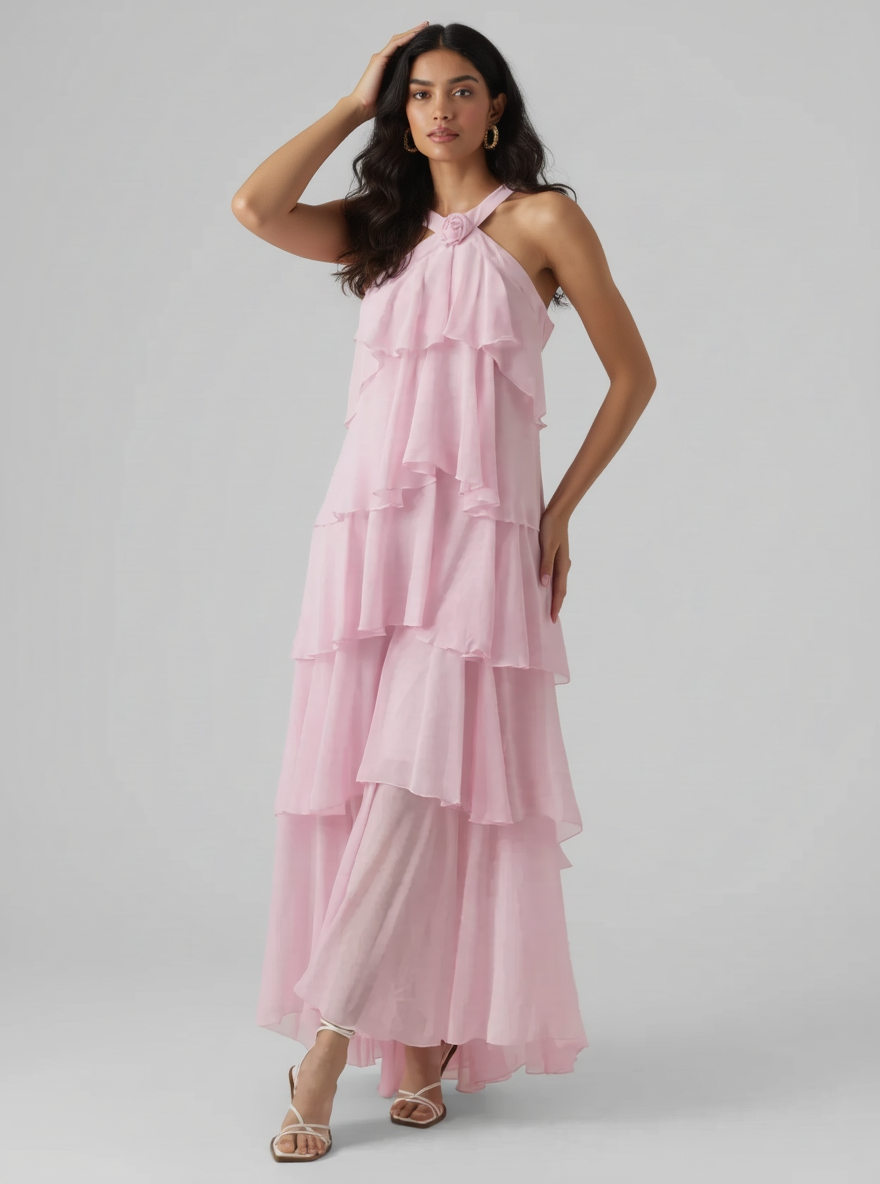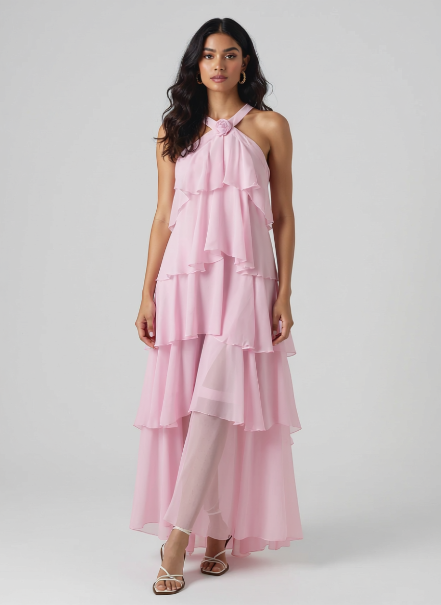 Nitsy Ruffled Maxi Dress In Pink