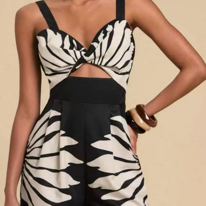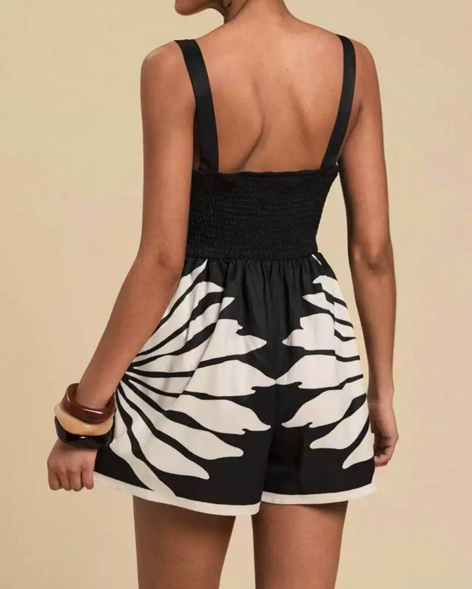 Say hello to your new go-to vacation piece. Designed with a tropical palm print and structured waist, this romper brings easy elegance to your warm weather days.