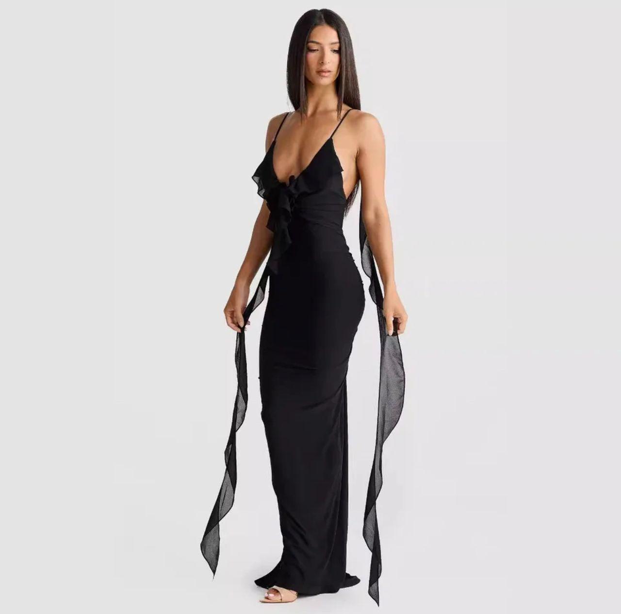 Salvia Ruffled Maxi Dress With Scarf