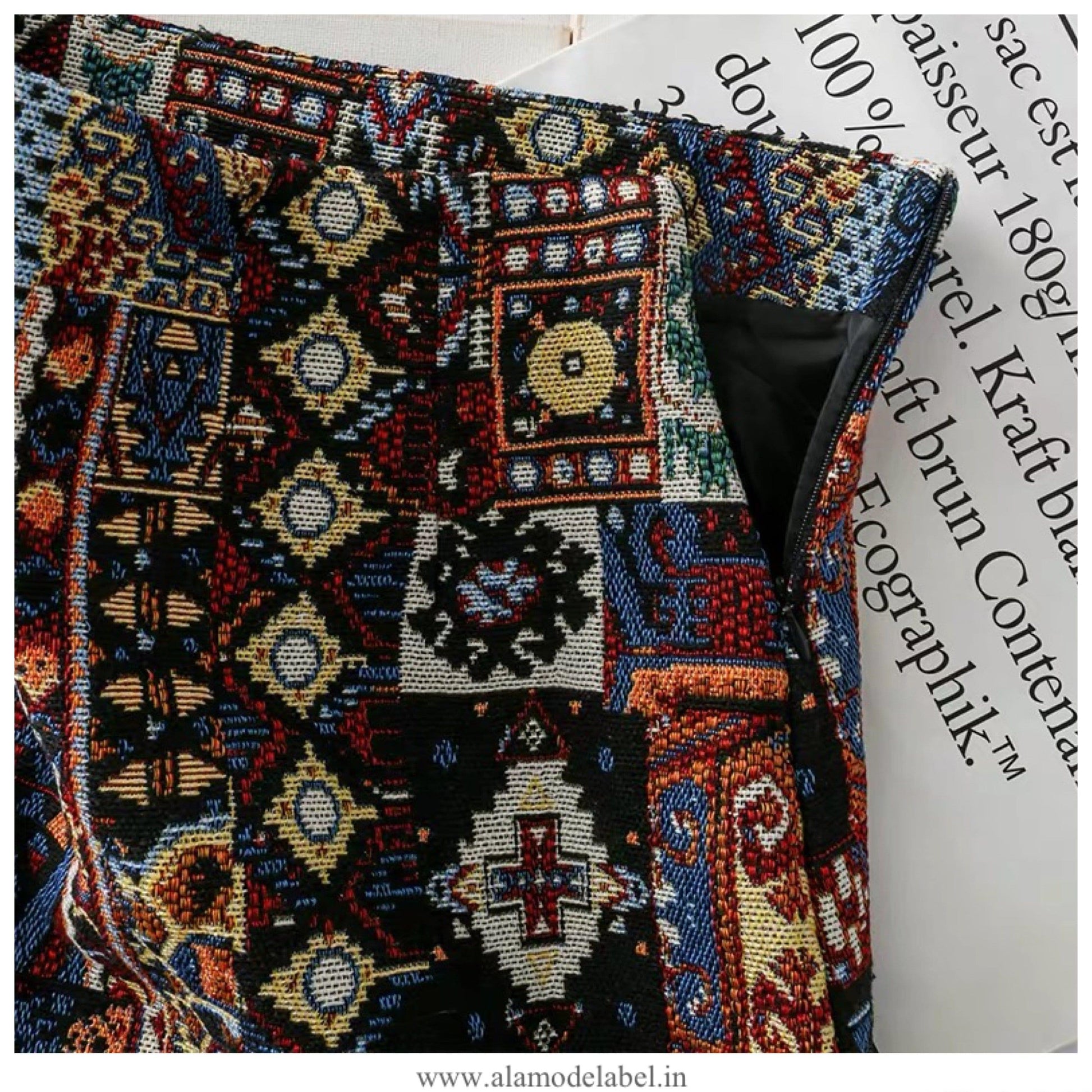 Vintage Tesla Embroidered Skirt In Red